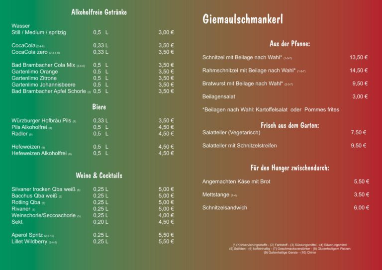Speisekarte Veranstaltungen